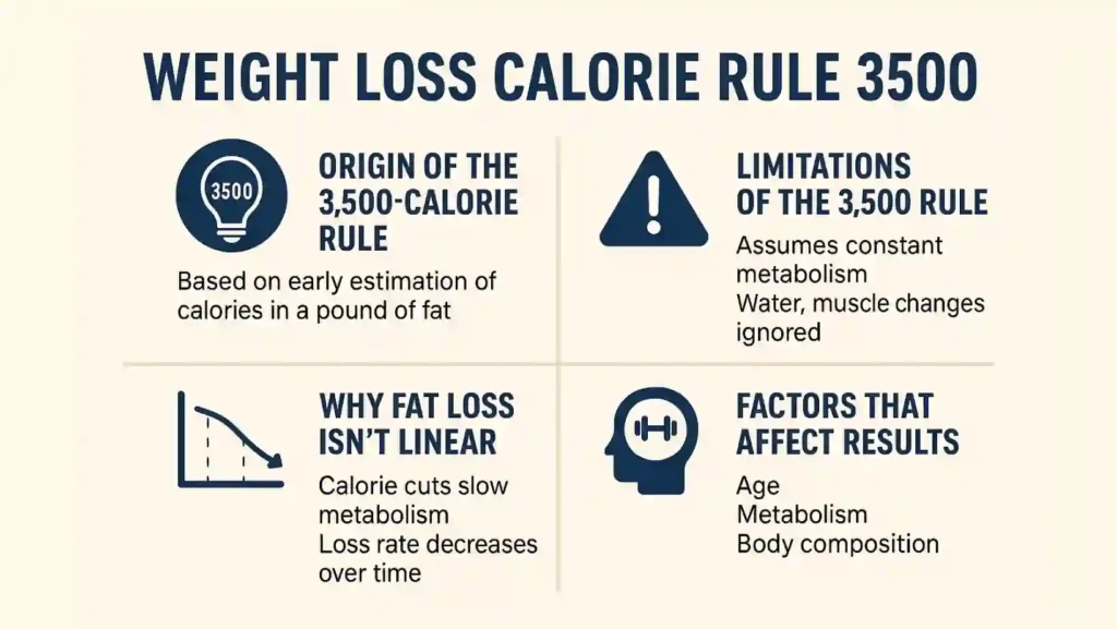 The 3,500 rule is a general guide. Modern research shows real results depend on age, metabolism, and body composition. Use it for estimates, not exact outcomes.